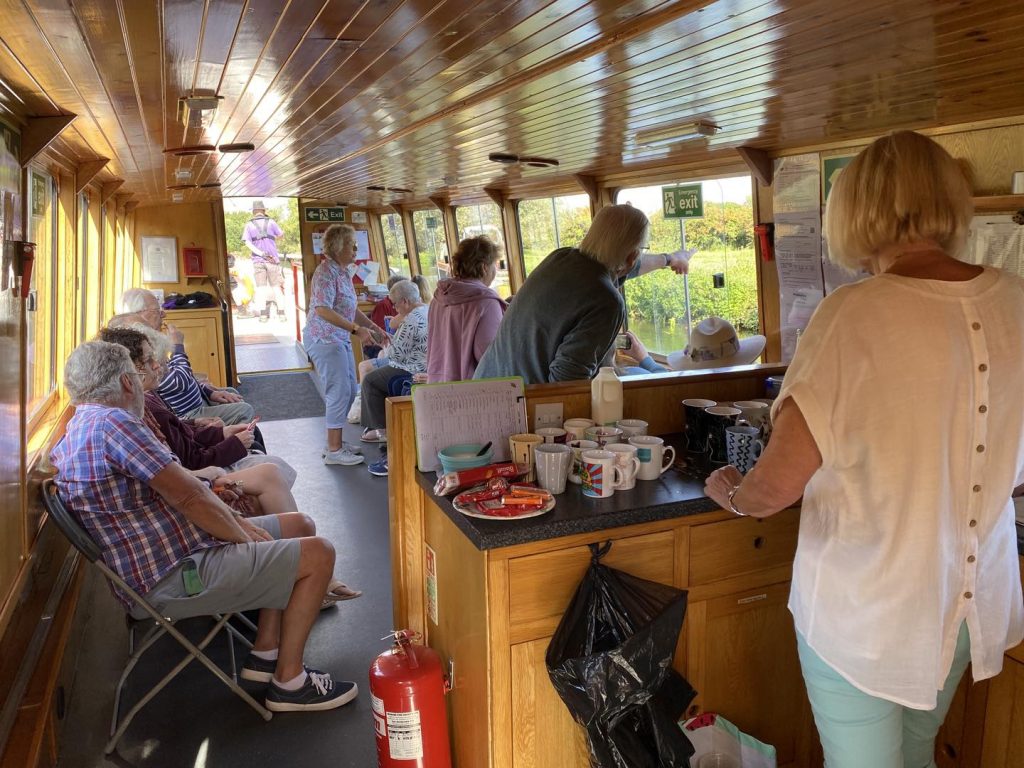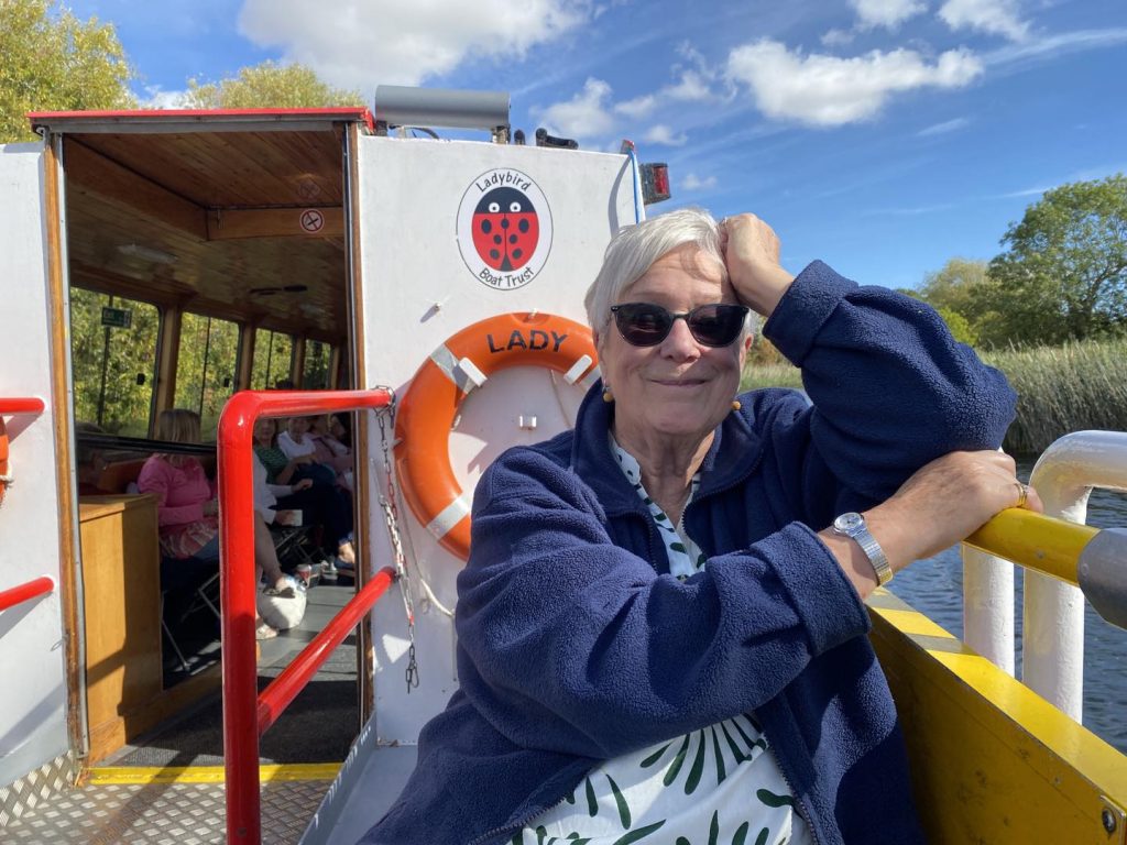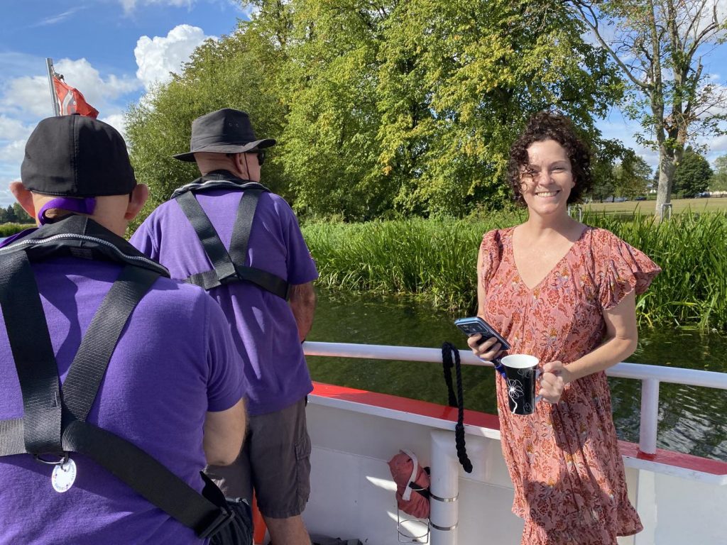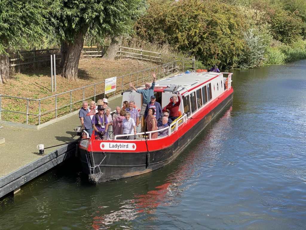 Glorious sunny morning tootling up the River Great Ouse towards Godmanchester on the Ladybird with special guest Cllr Mayor Julie Kerr. Coming back to Houghton Mill for a rather filling lunch.