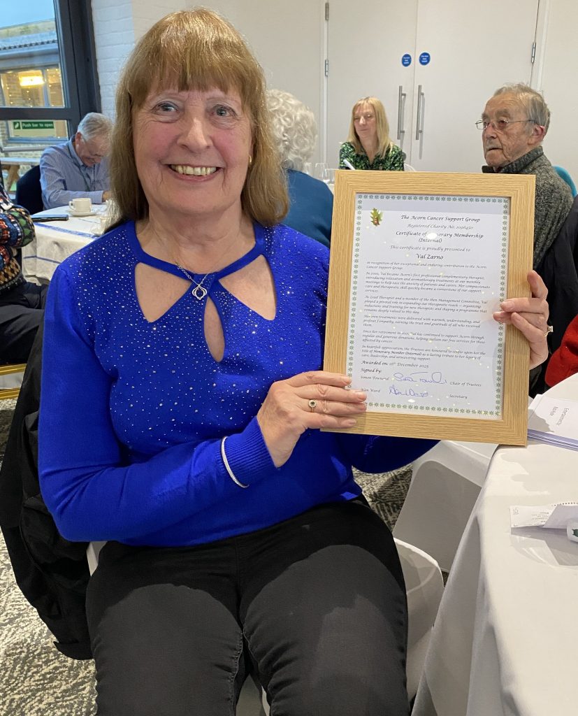 As we approach the end to 2025, The Acorn Support group held the annual Christmas Lunch. Reflecting on the last year, Gordon gave us plenty of positives as our group continues to grow. He explained the reason for the Acorn, which was chosen by one of the original trustees to show that if you plant an Acorn it will grow.