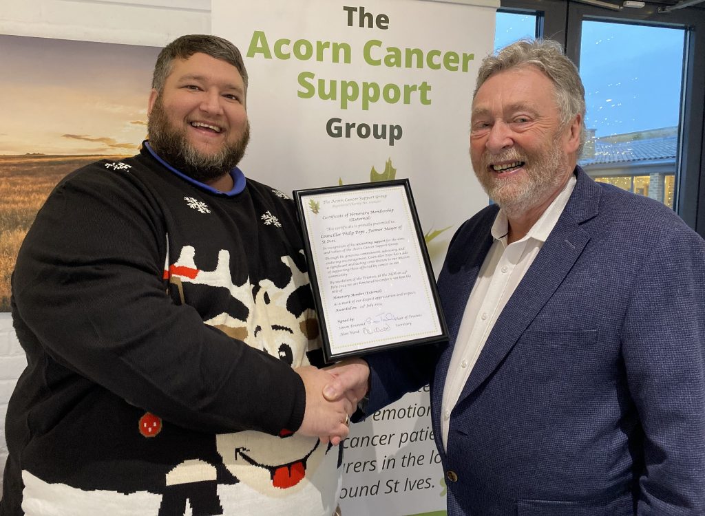 Philip Pope – Former Mayor of St Ives who has been a advocate supporter of The Acorn Cancer Support Group.